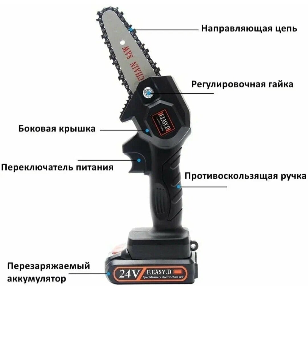 Мини-пила аккумуляторная цепная электрическая садовая