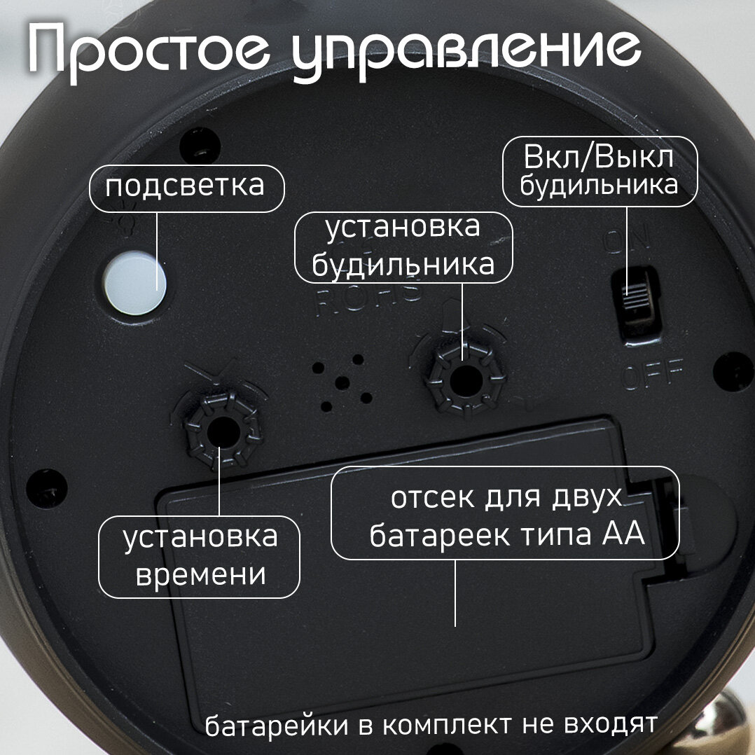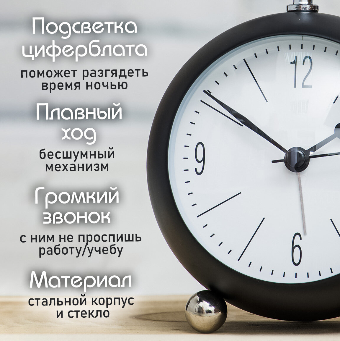 Купить Часы будильник металл Кругляш черные классические настольные подарок женщине на 8 марта, мужчине на 23 февраля, ребенку