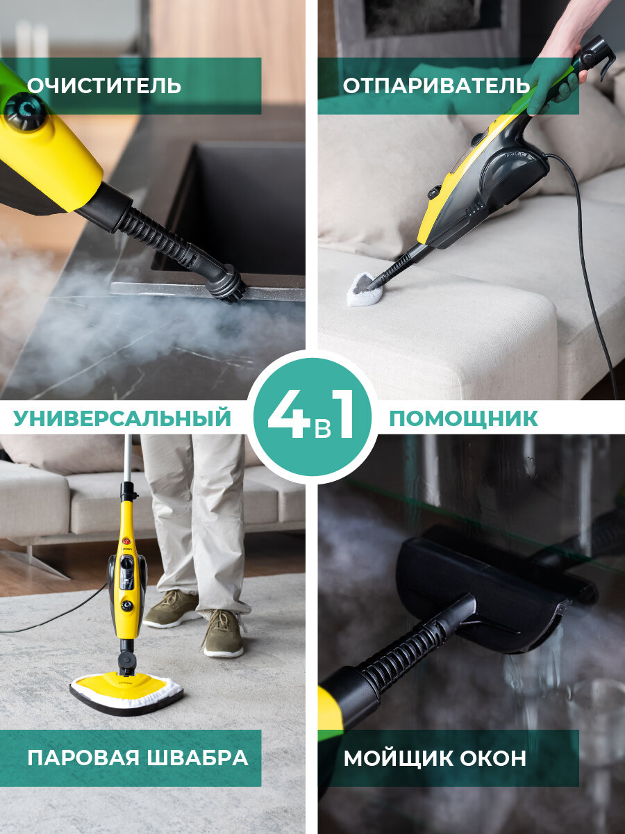 Пароочиститель Timberk T-STCV50 с 4-мя насадками, функция мойщик окон, отпариватель и очиститель