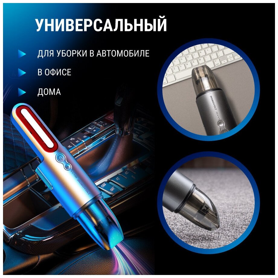 Пылесос Robovolt V8, Портативный, 100W, 6000 Pa, Батарея 7.4V * 2200 Ma / 2Шт., Фильтр Hepa, 2 Насадки, Led Фонарь, Магнитная...