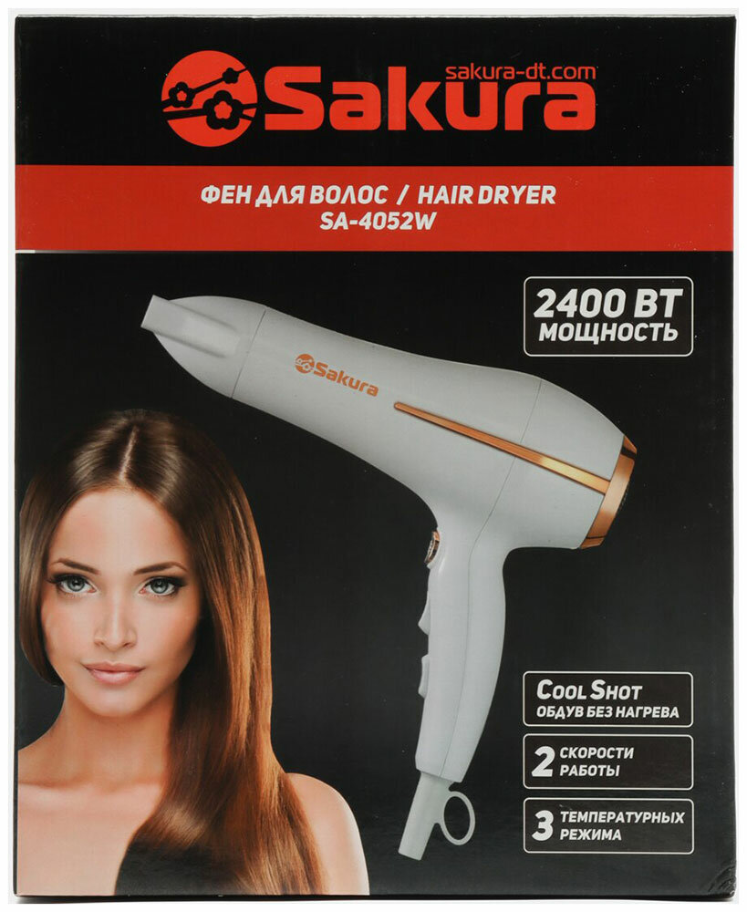 Фен Sakura SA-4052, 2400 Вт, 2 скорости, 3 температурных режима, белый