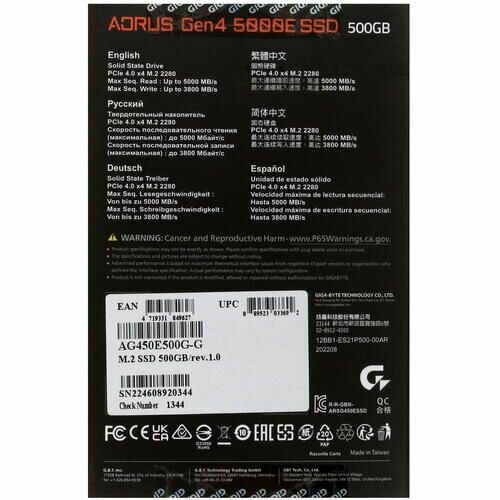 Купить Жесткий диск SSD Gigabyte M.2 2280 500GB AORUS Client SSD AG450E500G-G PCI-Express 4.0 x4, NVMe 1.4 5000/3800 AG450E500G-G RTL