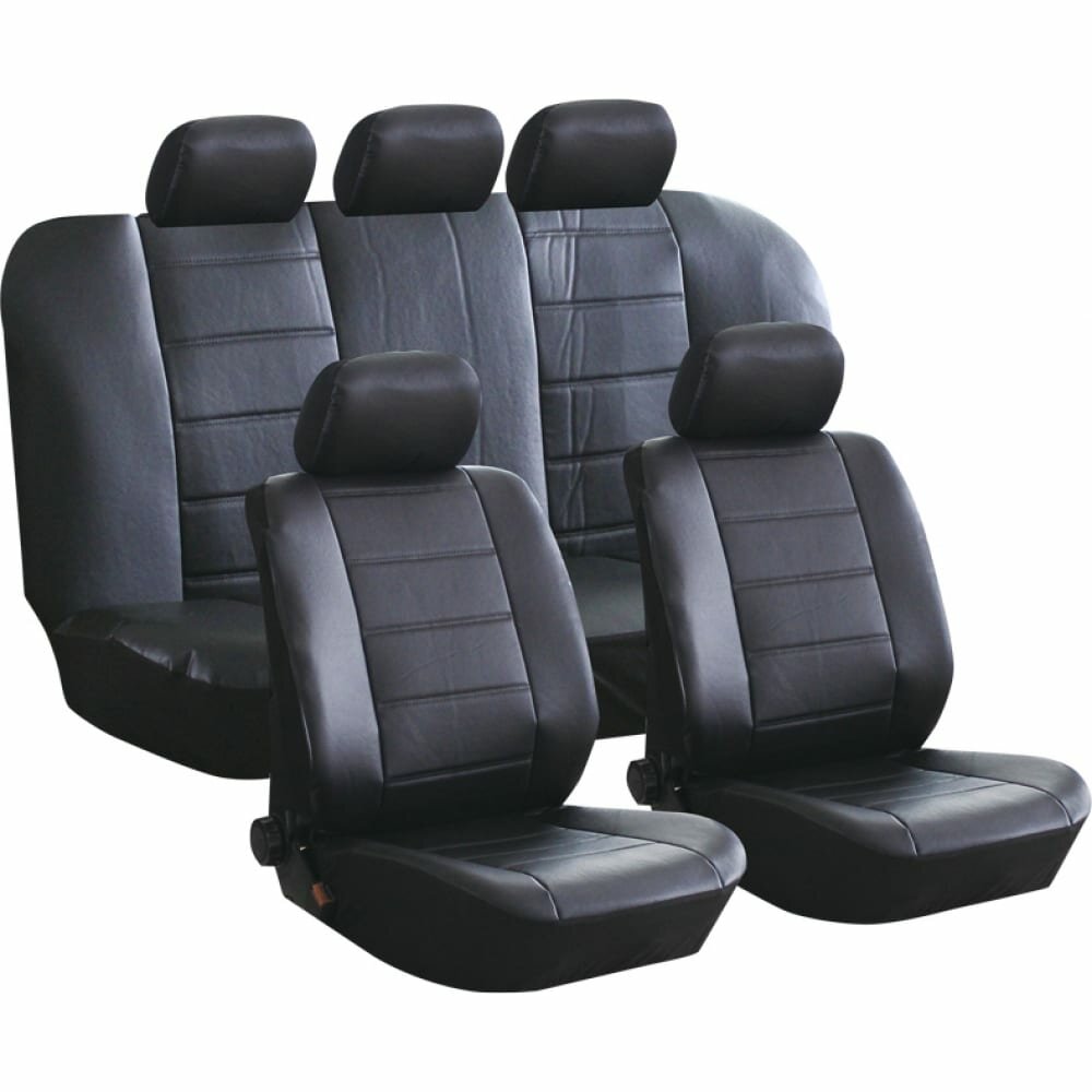 Чехлы универсальные на автомобильные сиденья, комплект "LUXURY", экокожа, черные