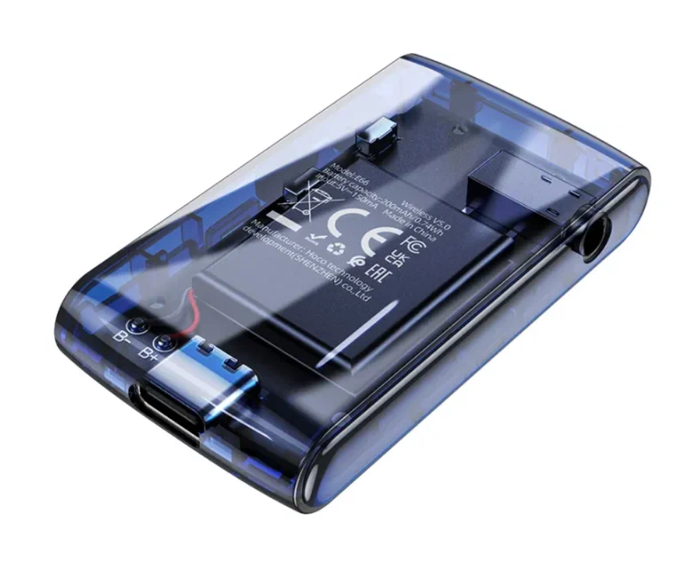 Автомобильный Bluetooth-приемник адаптер HOCO E66 Transparent discovery edition, 200 мАч, AUX Jack 3.5мм/Bluetooth, черный