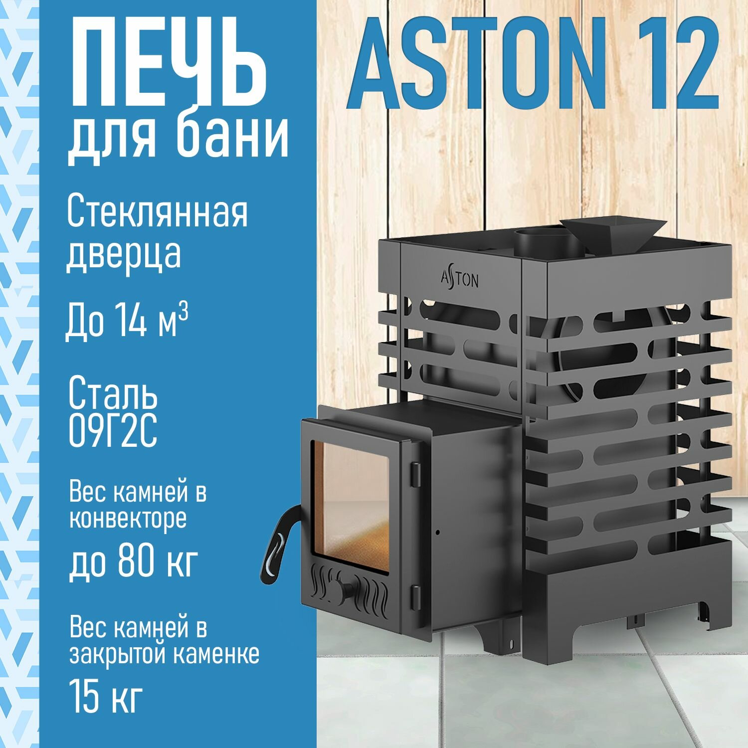 Печь для бани ASTON 12 стекло диаметр дымохода: 115 мм