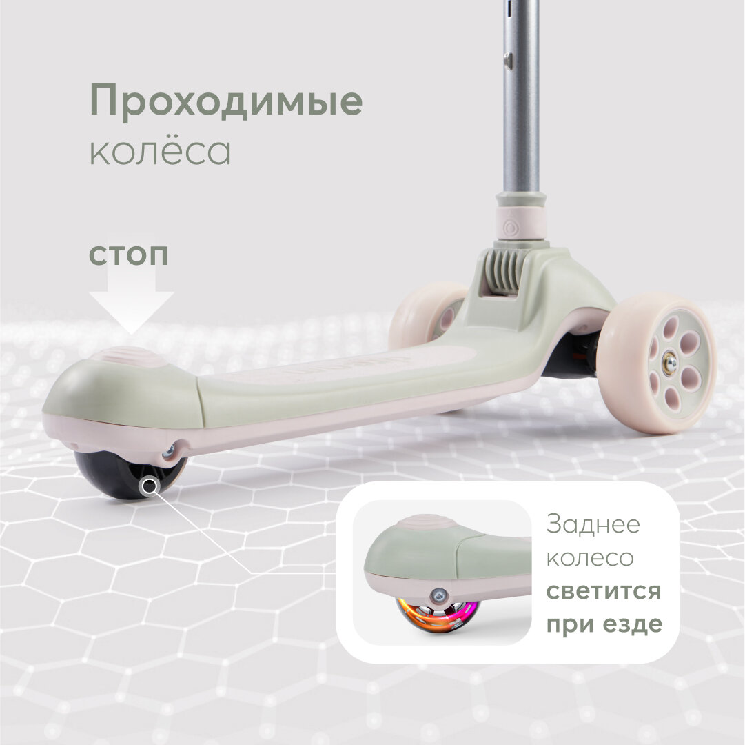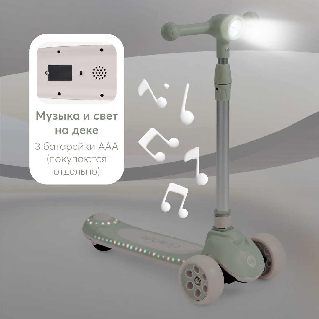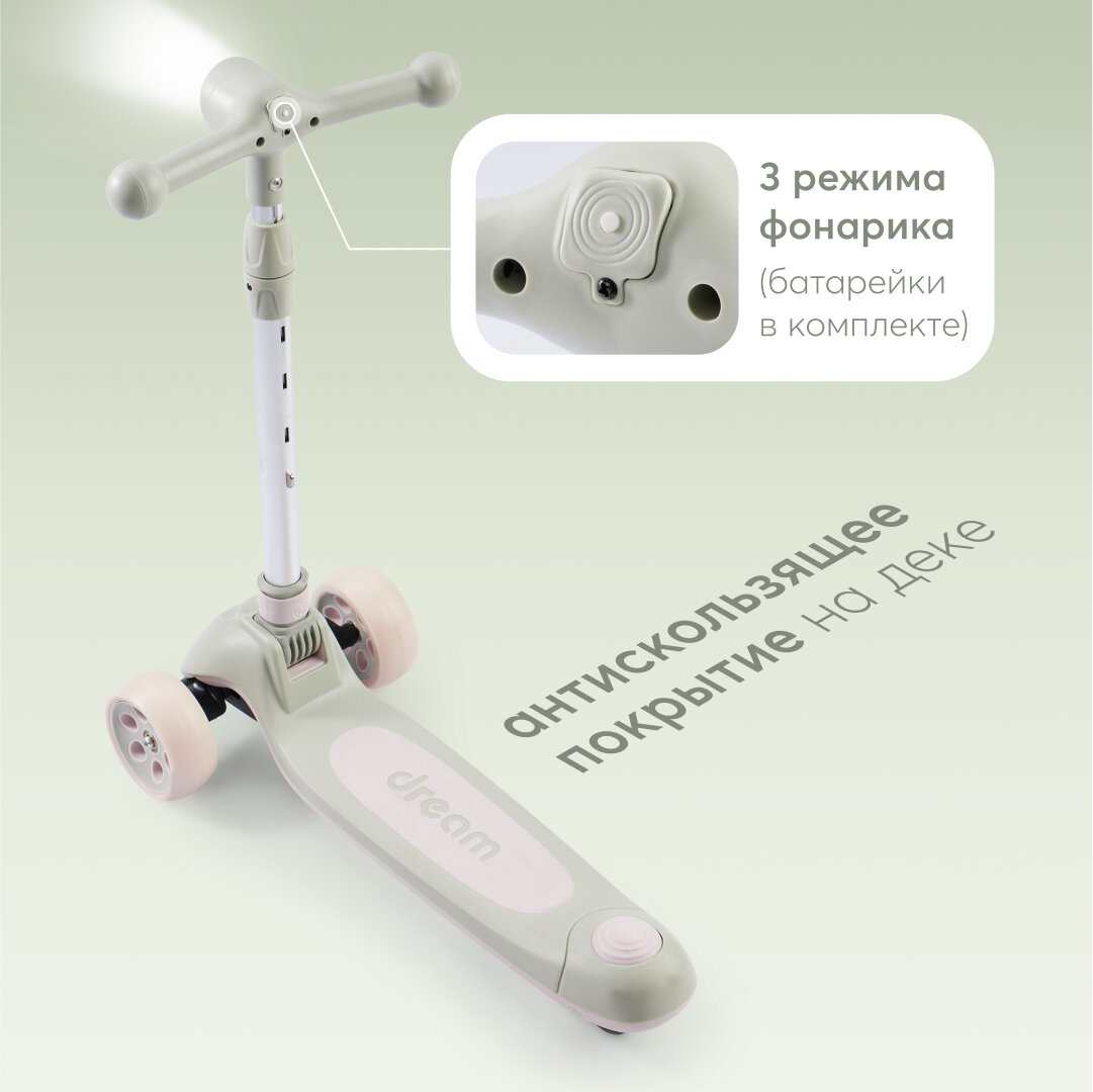 50031, Самокат детский Dream, самокат трехколесный детский для девочки, для мальчика, со световой подсветкой и музыкой светло-зеленый интересное: