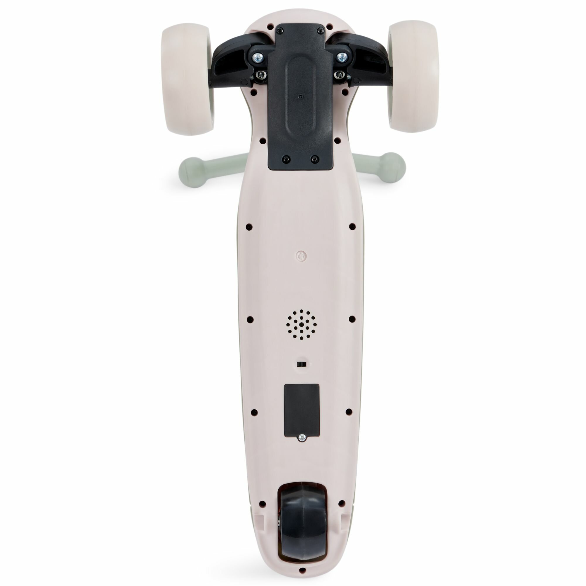 Во-вторых музыка и подсветка деки. Пользоваться мы ей не планировали, но интереса ради поставили батарейки (к счастью без проблем) глянуть что оно такое. Лента засветилась, а из динамика скрежет. Самокат все еще из коробки. Не страшно, изначально было понятно что до первой лужи.