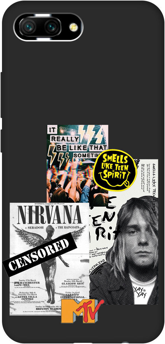 СохранитьМатовый Soft Touch силиконовый чехол на Honor 10, Хонор 10 с 3D принтом "Nirvana" черный интересное: