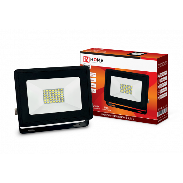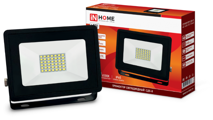 Прожектор светодиодный In Home In Home, СДО-8 (6500К 2850Лм IP65), 30 Вт