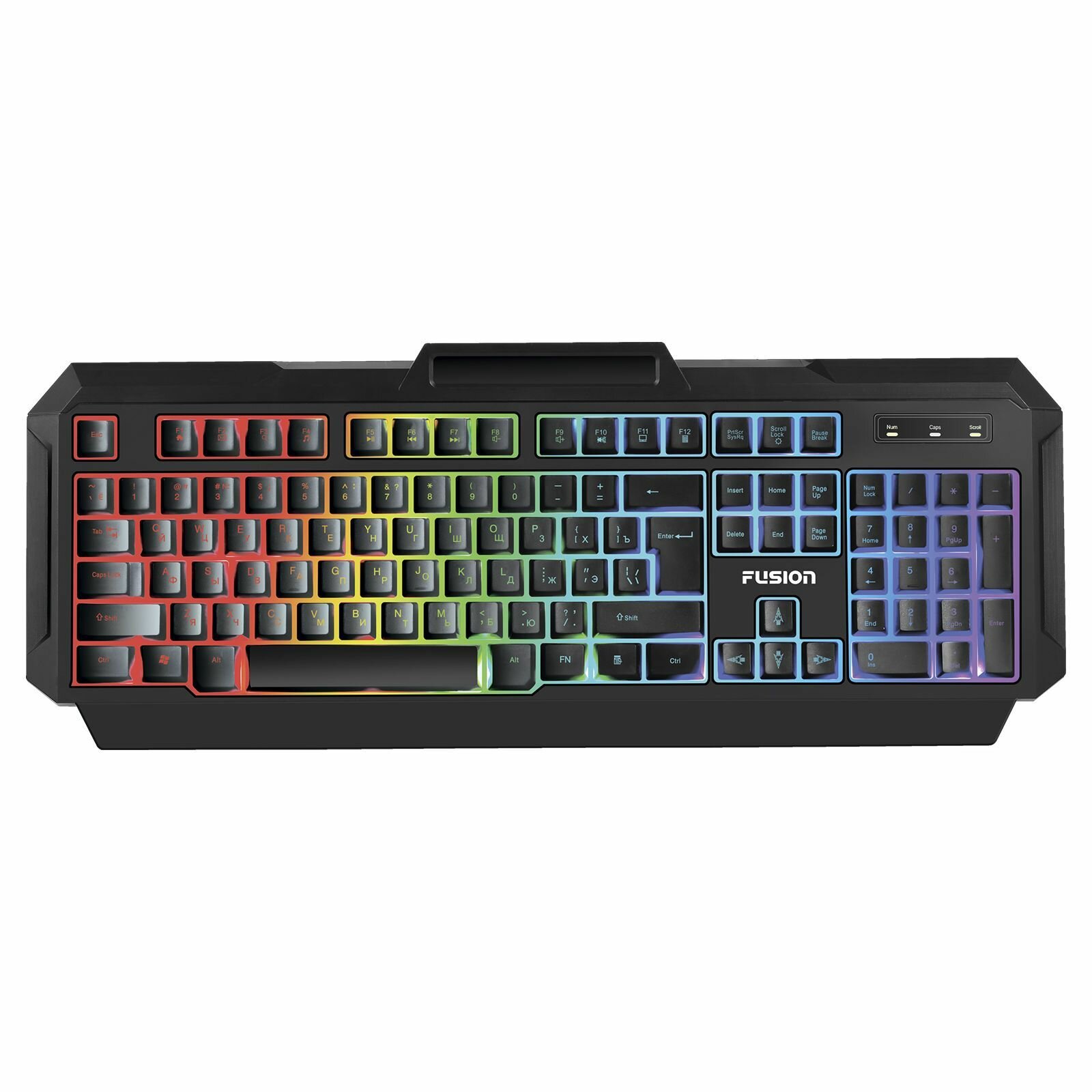 Клавиатура игровая FUSION мембранная, проводная с подставкой под телефон, функция Anti-ghost, 104 клавиши
