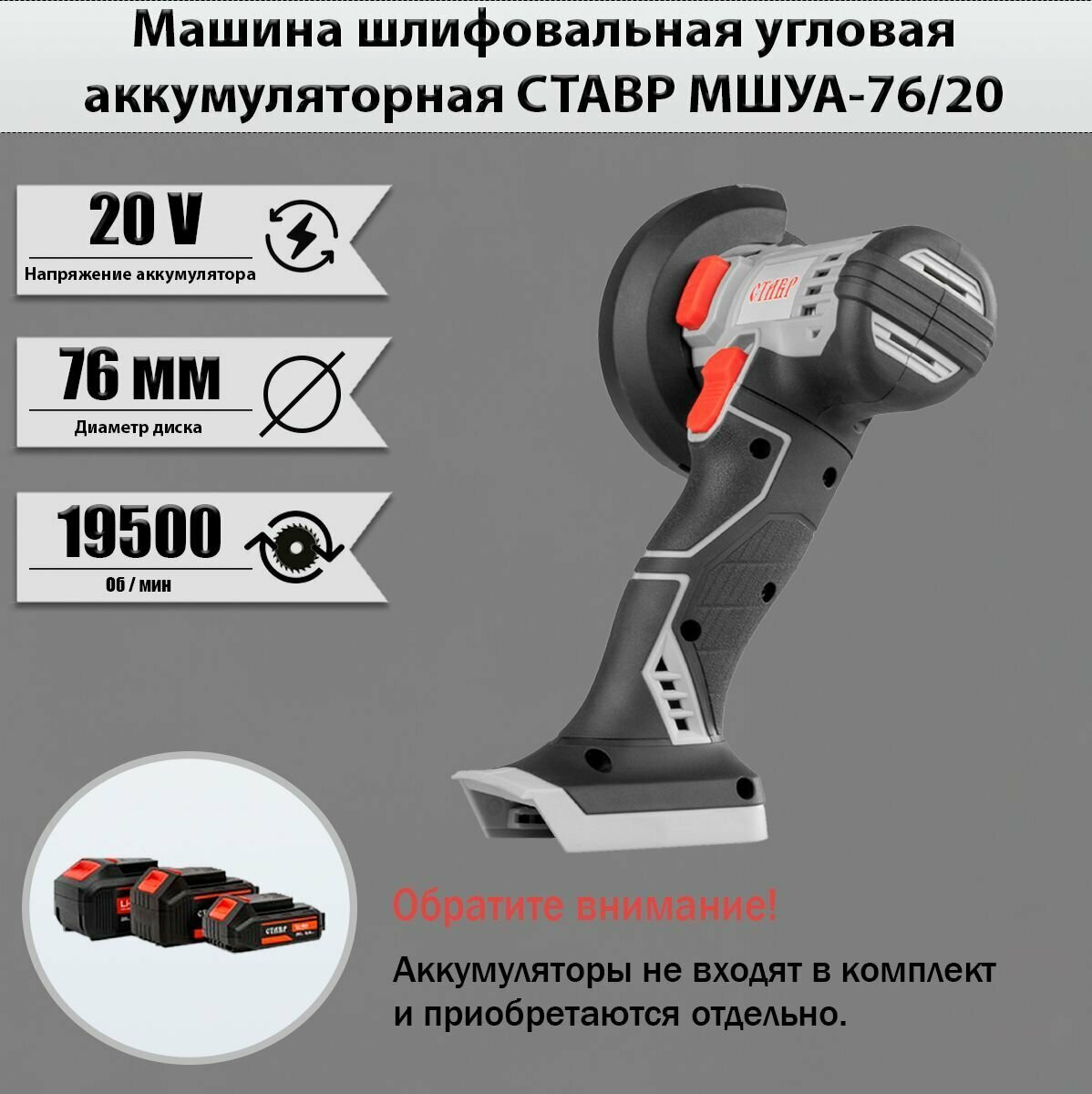 Машина шлифовальная угловая аккумуляторная ставр МШУА-76/20