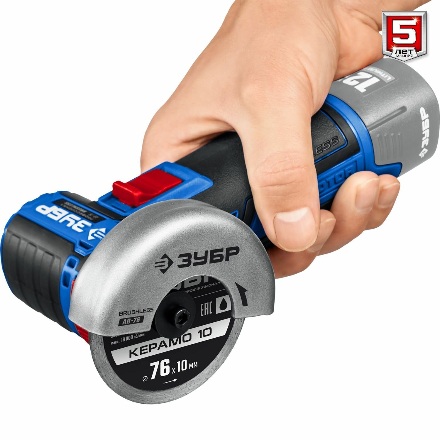 ЗУБР 12В бесщеточная УШМ, без АКБ, в коробке, Профессионал. AB-76