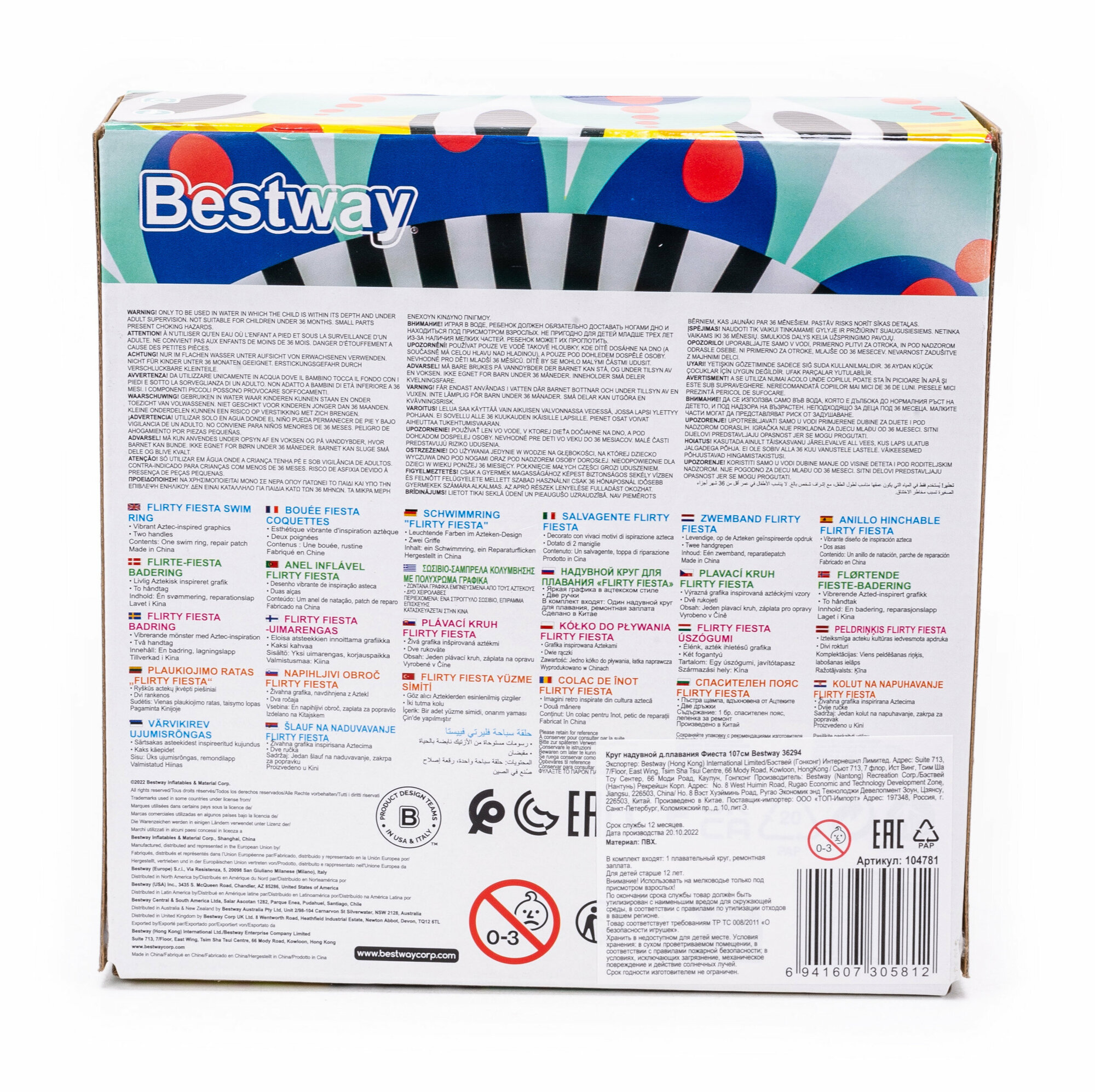 Bestway Круг для плавания FLIRTY FIESTA SWIM RING 107 см, 36294