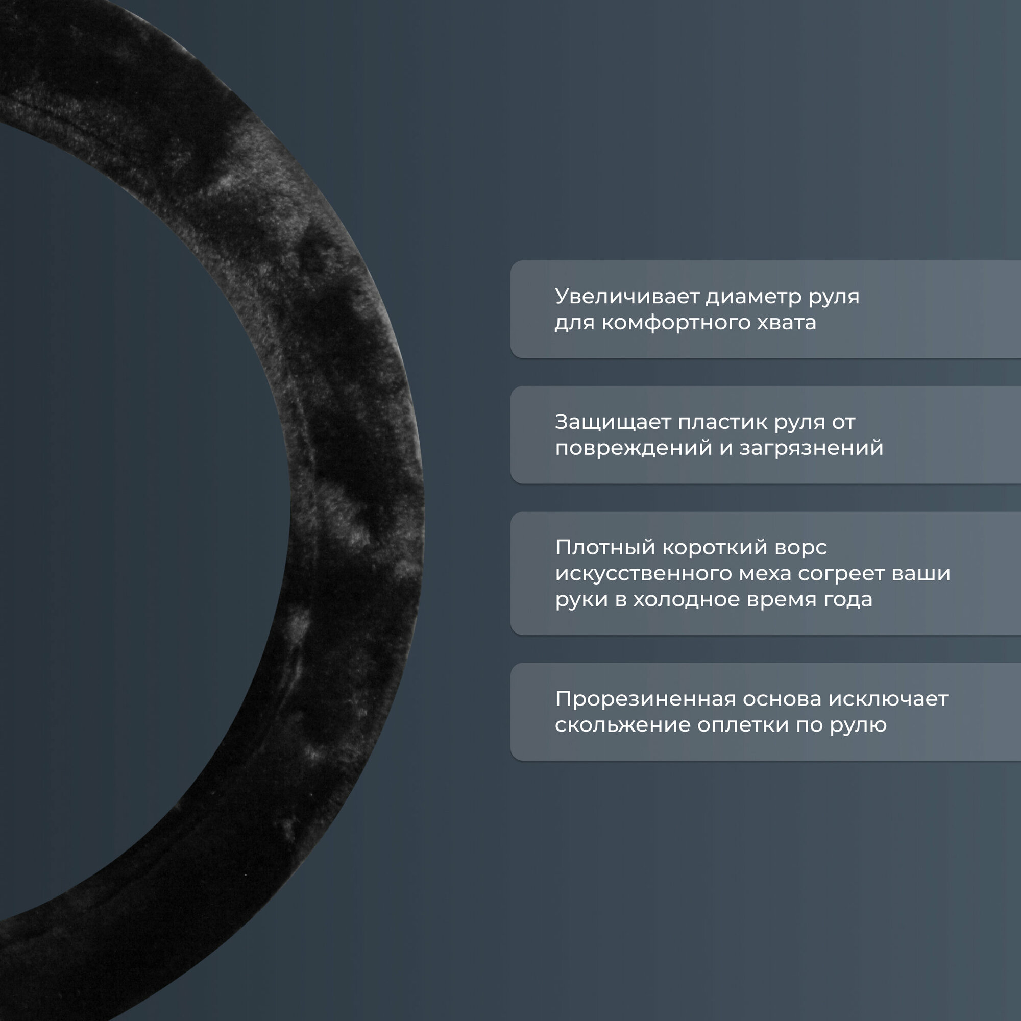 Оплетка на руль иск. мех PSV ARKTIK Extra (Черный) M
