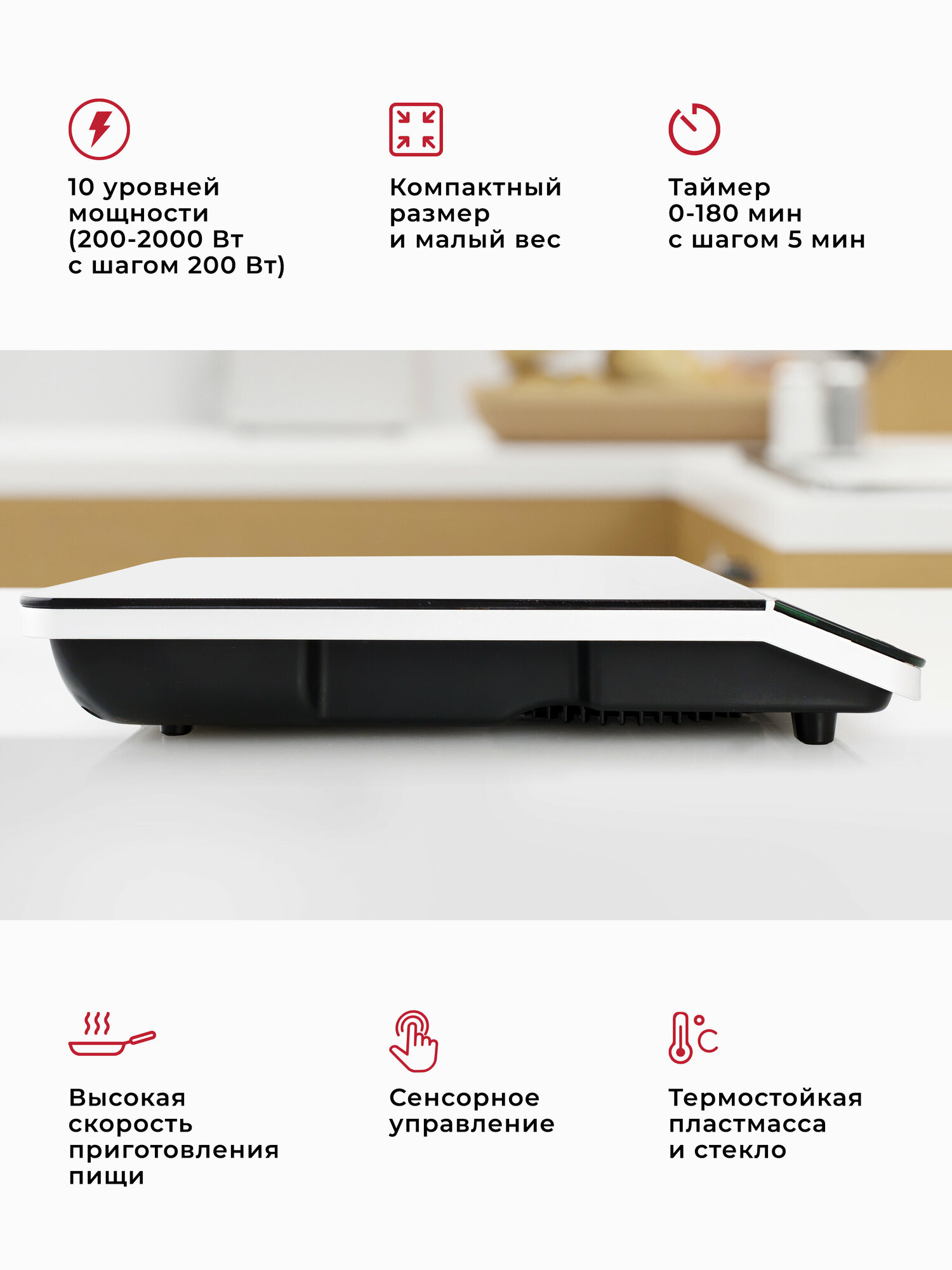 Плита электрическая индукционная GEMLUX GL-IP20A для самогоноварения, 1 конфорка, 2000 Вт, кухонная электроплитка, электроплита для кухни, настольная варочная панель стеклокерамика