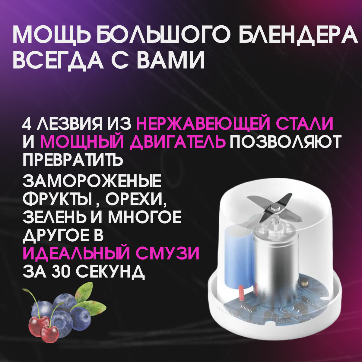 Портативный блендер для смузи Fresh Juice, беспроводной,розовый, 350 мл интересное: