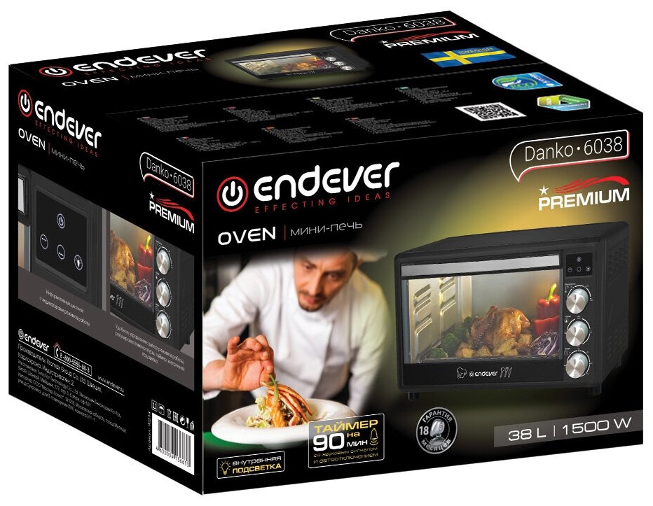 Купить Мини печь электрическая Endever Danko 6038/ духовка 38 литров / 1500 Вт / до 320 градусов