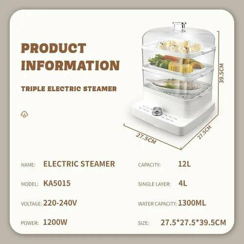 Электрическая пароварка, 2 корзины для приготовления пара, универсальная, 1000 Вт