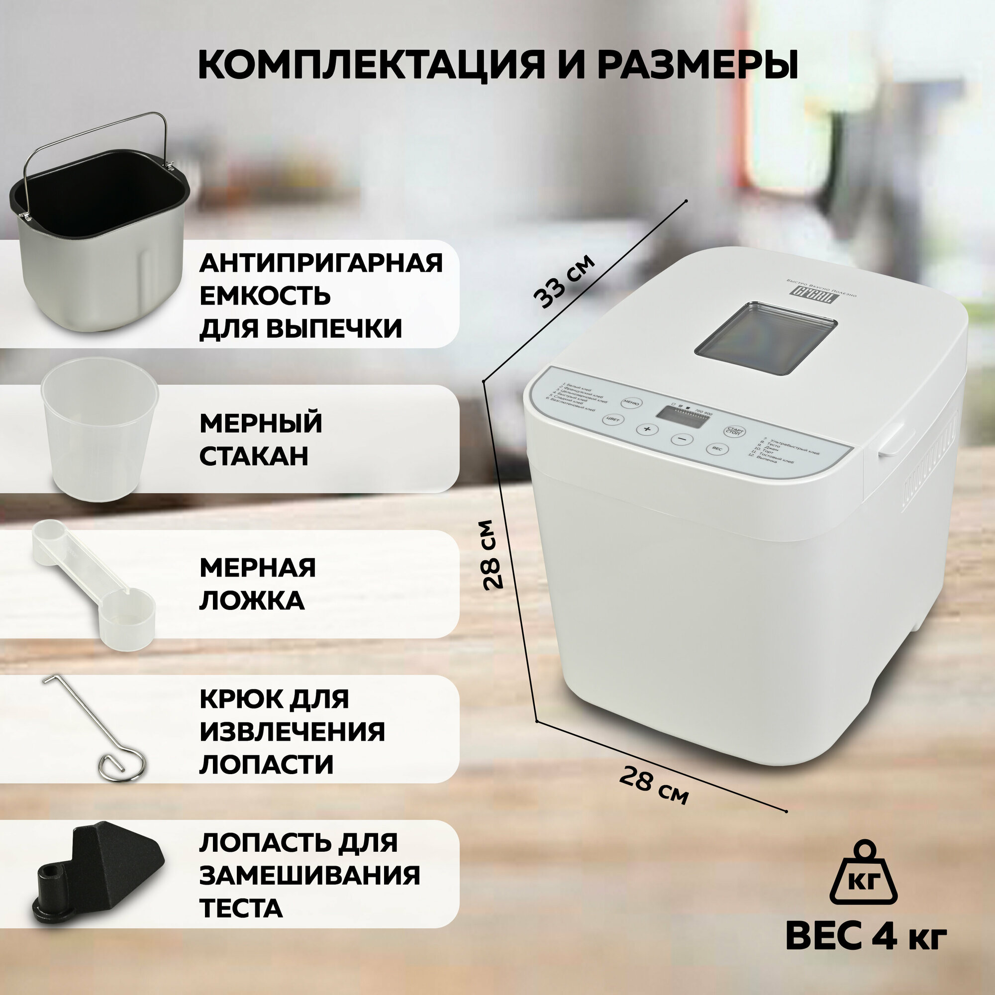 | Программы | безглютеновая выпечка / варенье / замес теста / белый хлеб / Быстрый хлеб / Выпечка / сладкий хлеб / торт / Тостовый хлеб / ультрабыстрый хлеб / Французский хлеб / цельнозерновои? хлеб |