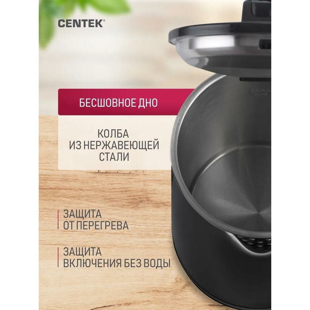 Чайник Centek CT-0005 1.7л, 2200Вт, бесшовная колба, двойные стенки, эффект термоса интересное: