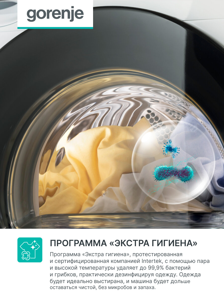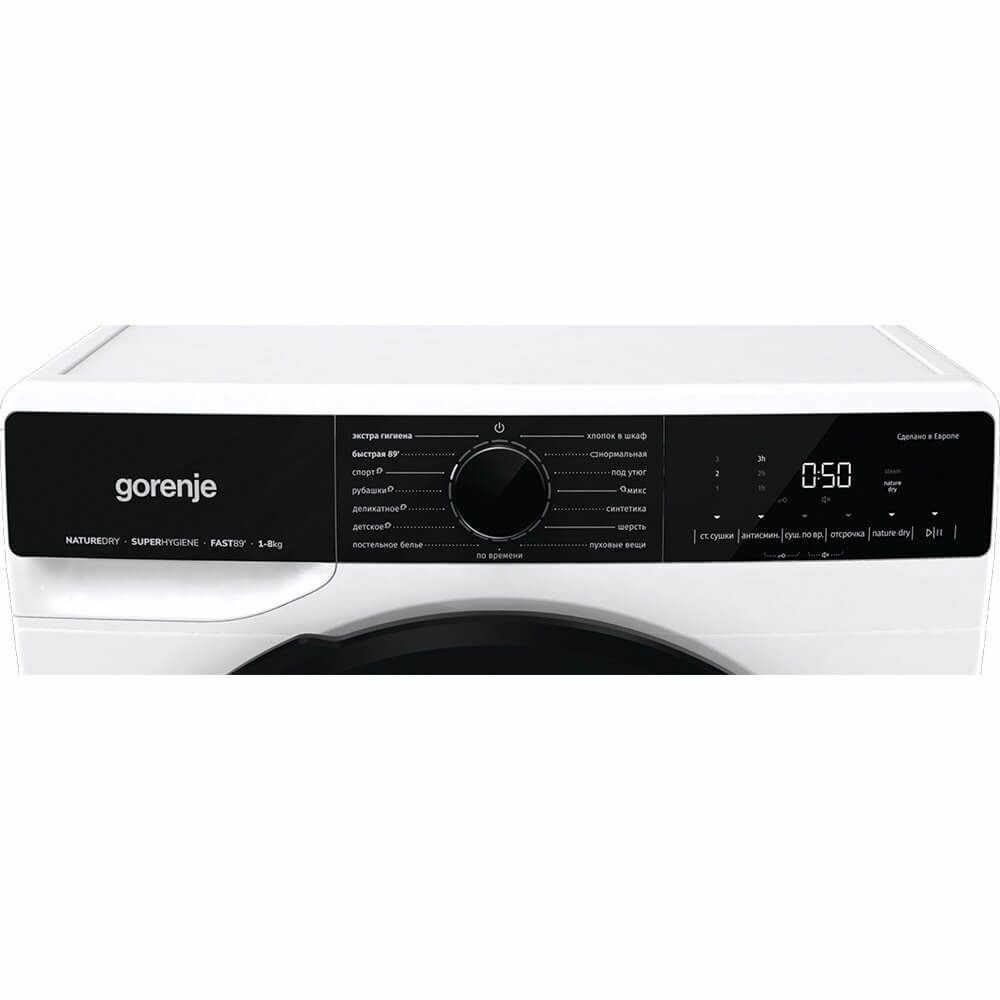 Сушильная машина Gorenje DPNA82WIFI/C, загрузка 8 кг, сушка с тепловым насосом, с паром, белая/черная