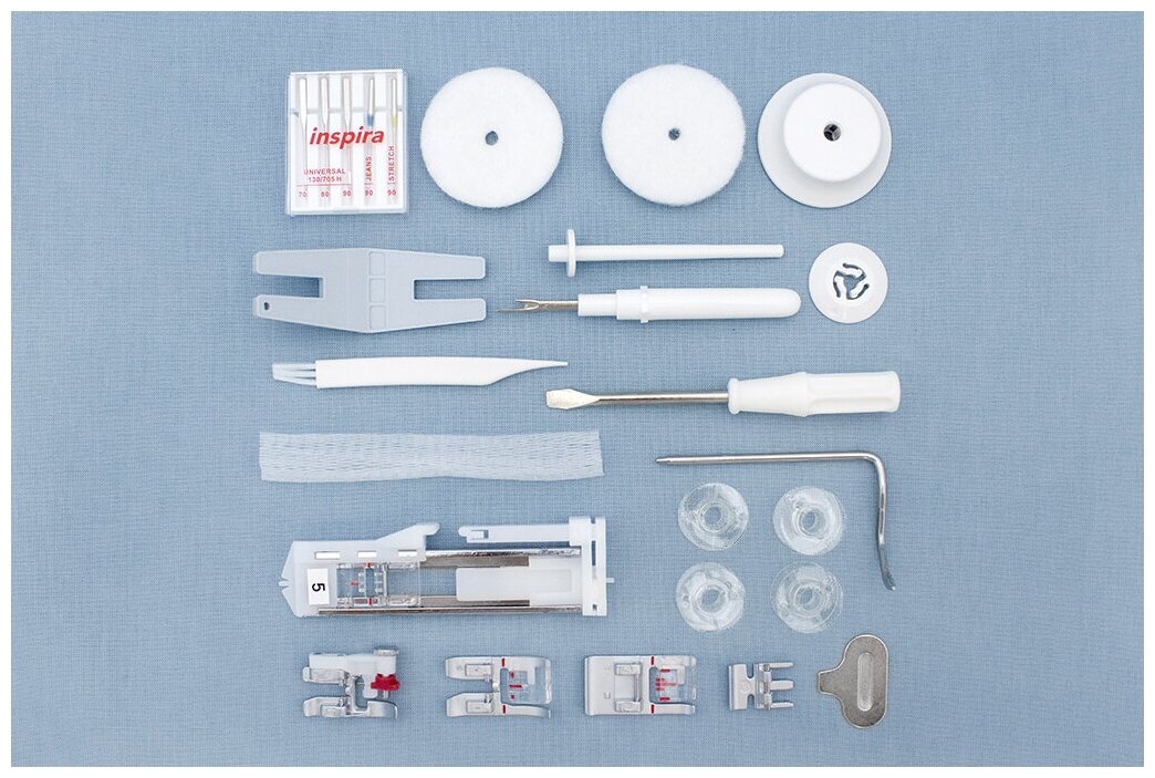 | Лапки в комплекте | для вшивания молнии, для квилтинга, для подрубки, для пришивания пуговиц, обметочная |