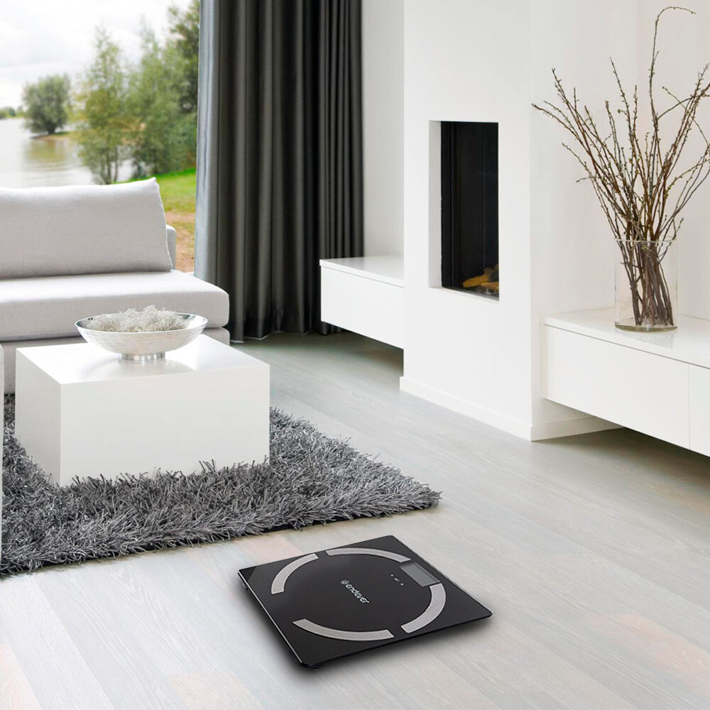 | Дополнительная информация | максимальный вес 150 кг, точность измерения 100 г, комплексное измерение процентного соотношения массы тела, количества жира, воды в организме, соотношения массы мышц, костей, количество потребляемых калорий, ИМТ, ввод индивидуальных данных (пол, возраст, рост), электронная система балансировки, автоматическая диагностика неисправностей, высококачественное закаленное стекло повышенной прочности (легко моется, устойчиво к царапинам), LCD-дисплей с подсветкой, индикация слабого заряда батареи, индикатор перегрузки, автовыключение |