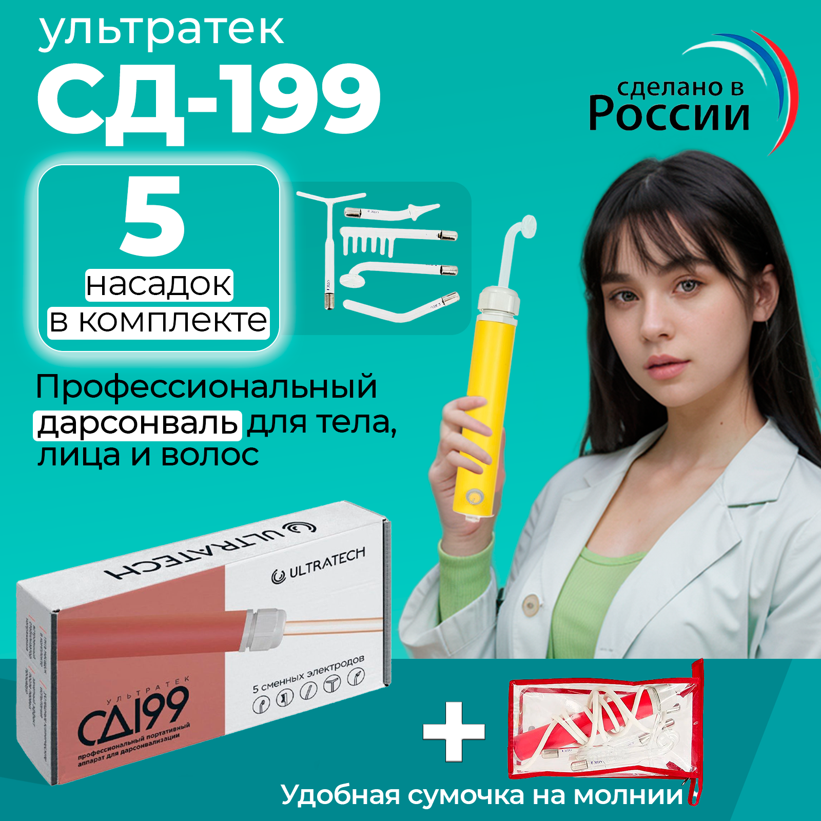 Дарсонваль Ультратек СД-199 желтый для волос, тела, лица, шеи, ног/аппарат/массажер импульсный 5 насадок интересное: