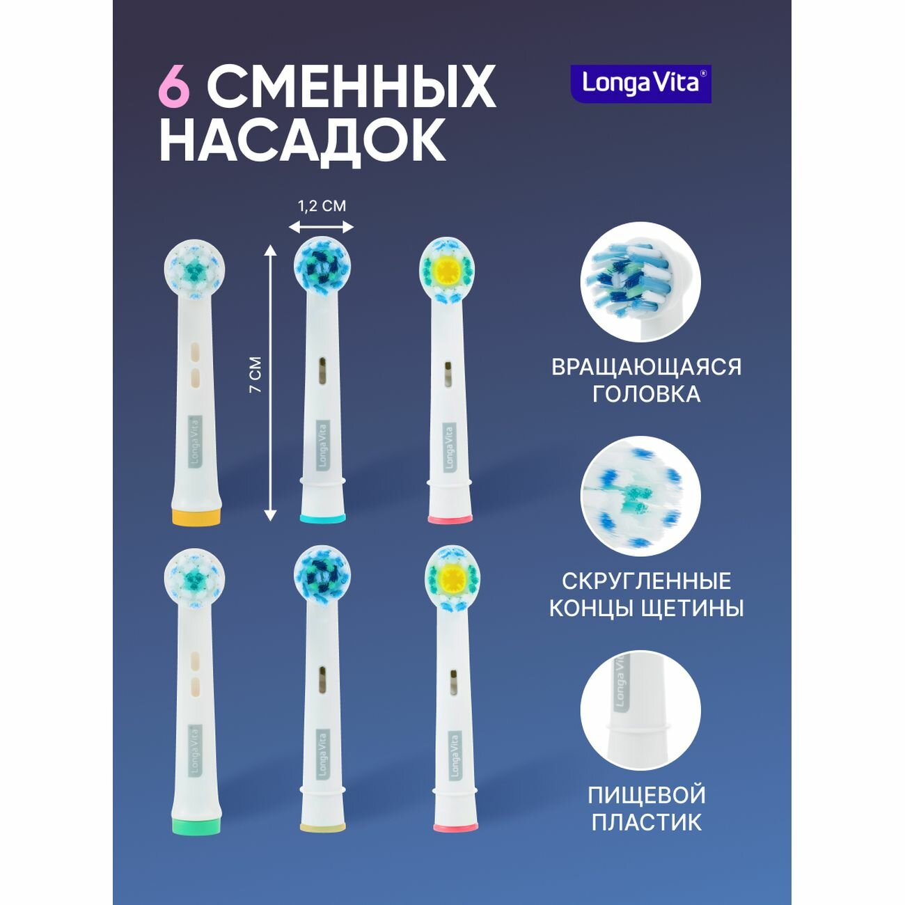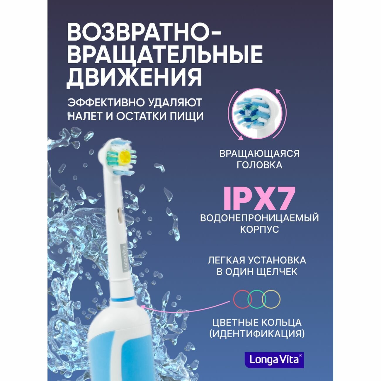 Longa Vita SoClean Электрическая зубная щетка для взрослых, 4 сменные насадки