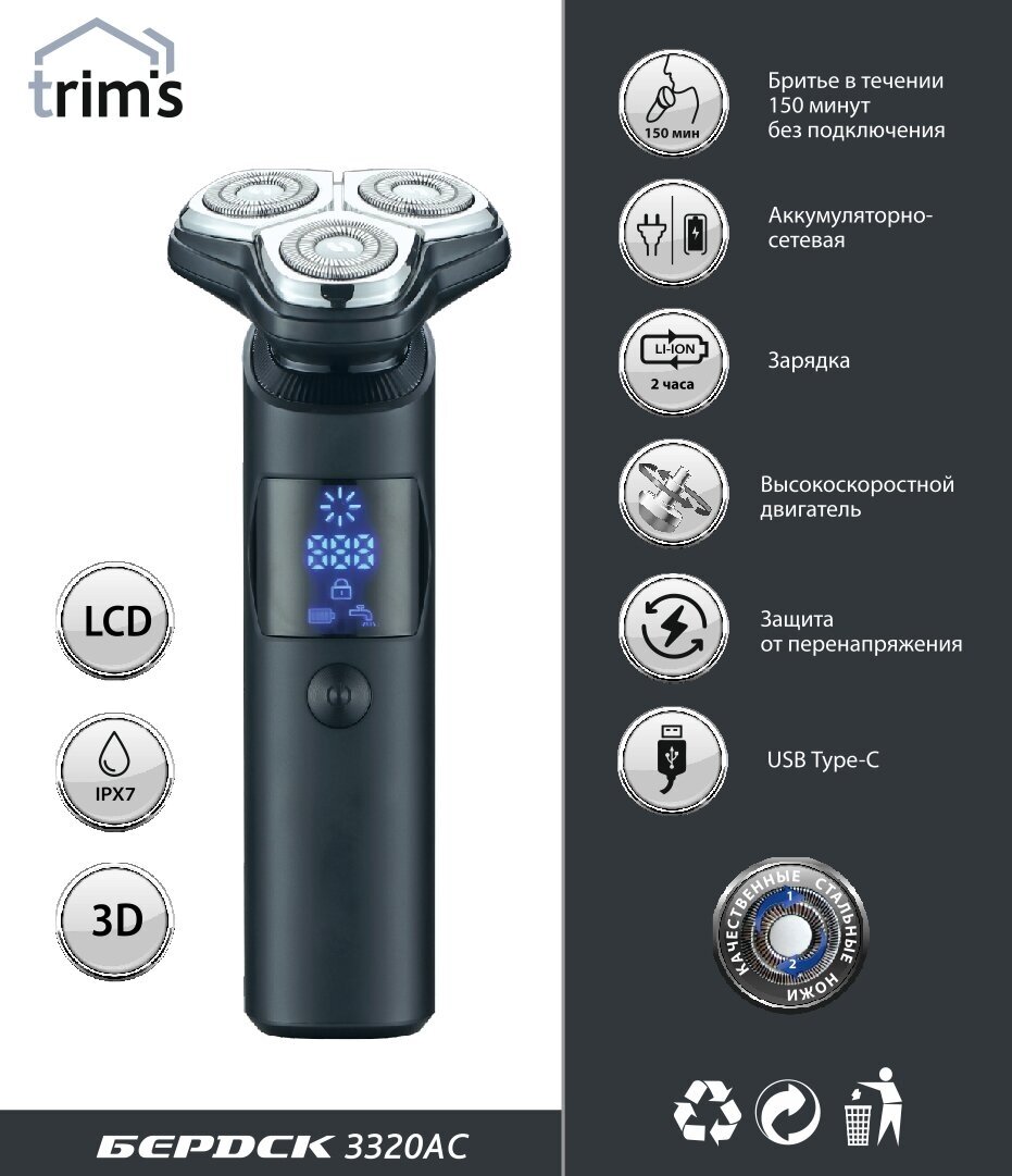 Бритва бердск (Тримс) 3320AC синий