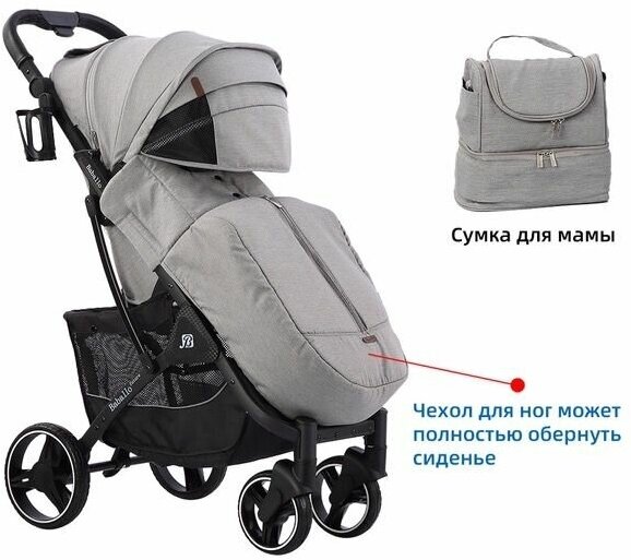 Коляска детская прогулочная для новорожденных Babalo 2023 серый черная рама, с сумкой для мамы