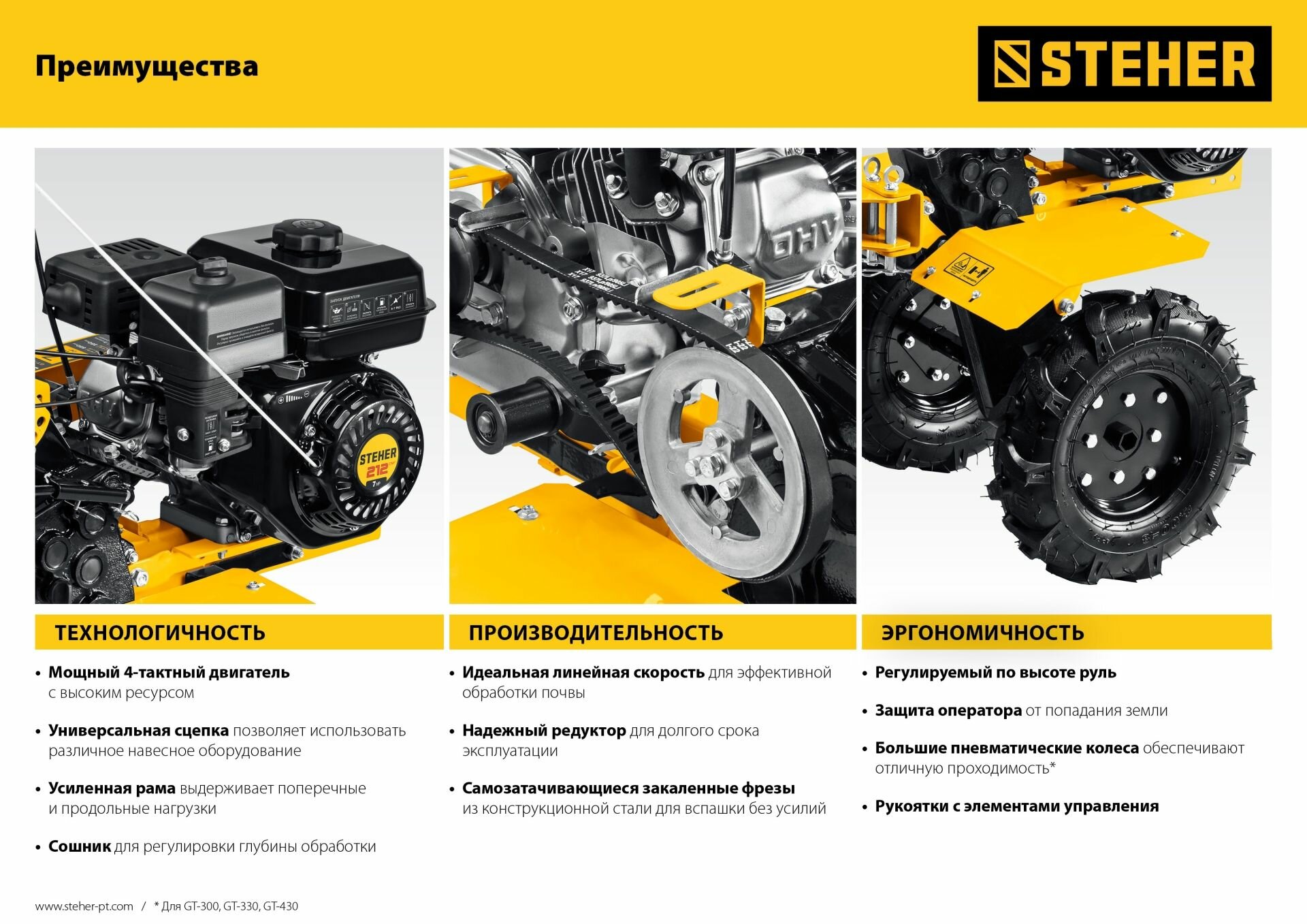 Ниже Вы можете прочитать отзывы на Мотоблок бензиновый 7лс понижающей передачей STEHER GT-430, ознакомится с подробными характеристиками, посмотреть интересные обзоры и фотографии на Мотоблок бензиновый 7лс понижающей передачей STEHER GT-430.