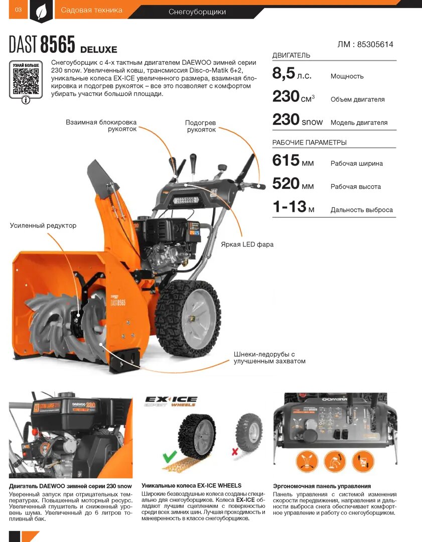 Снегоуборщик бензиновый Daewoo DAST 8565 61 см 8.5 л.с интересное:
