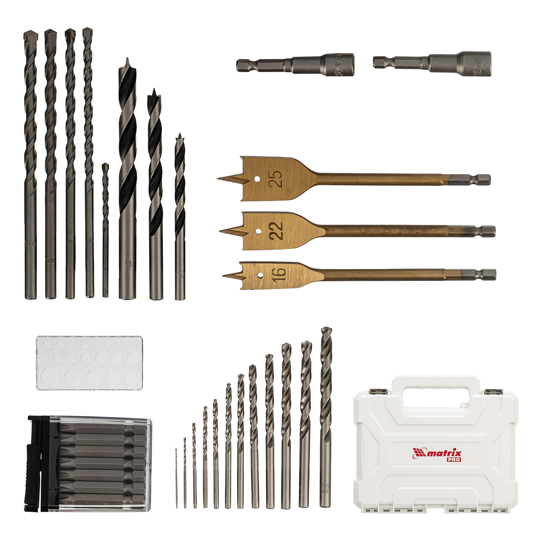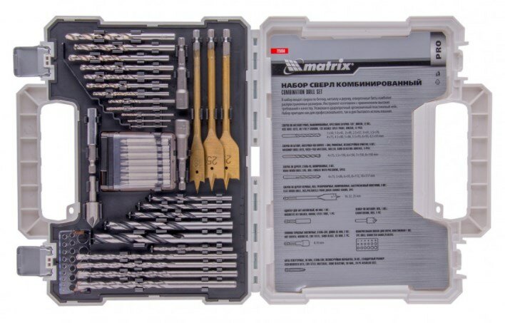 Набор сверл комб.,мет.1-6,5мм,бет.4-8мм,дер.4-10мм,перк, бит.20шт,адап,гол.2шт,зенк,50пр.// Matrix интересное: