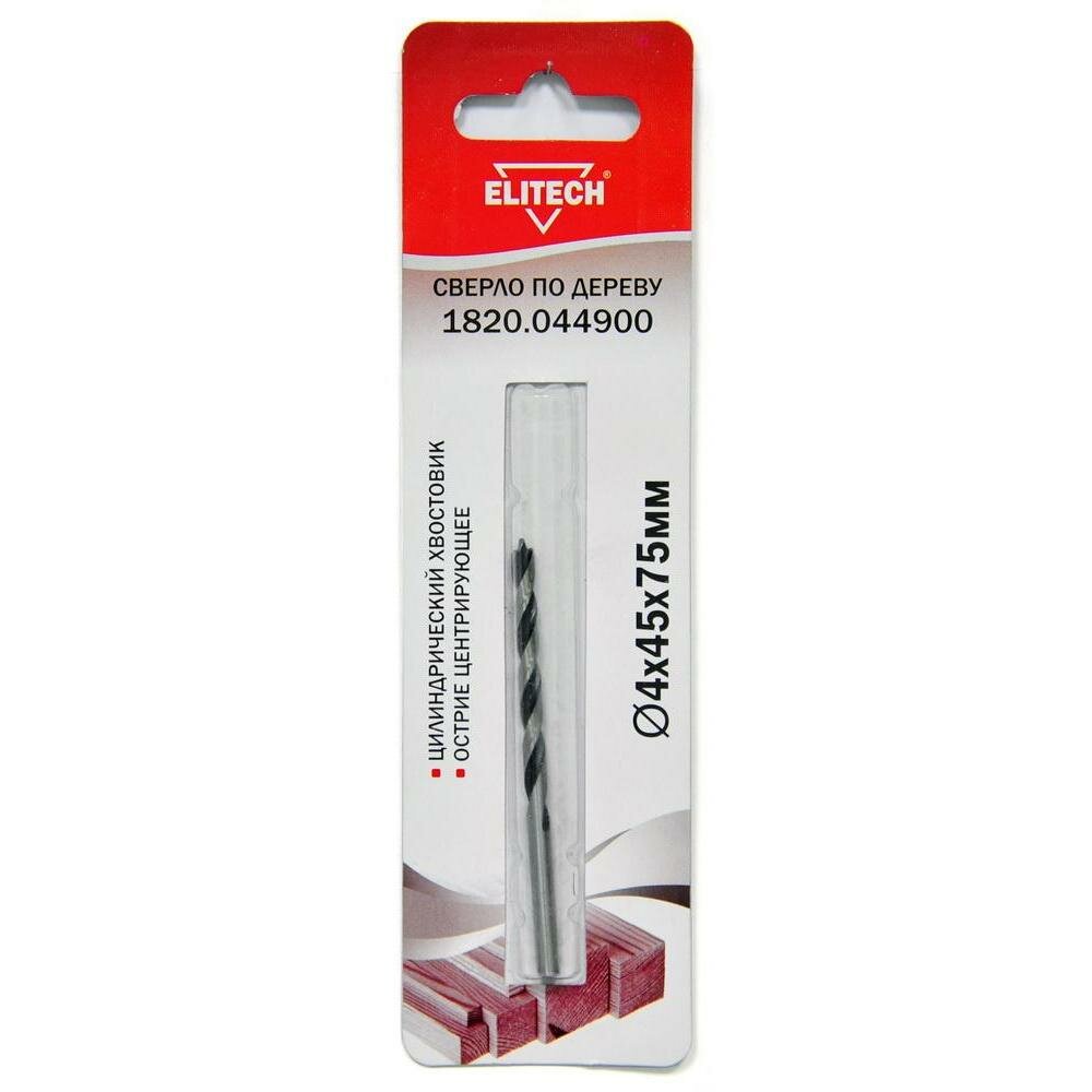 Сверло Elitech 1820.044900 по дереву Д=4мм Дл=75мм (1пред.) для дрелей