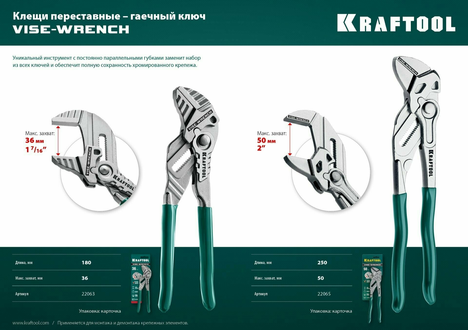 KRAFTOOL Vise-Wrench, 250 мм, клещи переставные-гаечный ключ (22065)
