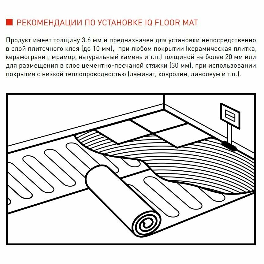 Нагревательный мат IQ FLOOR MAT 6 кв. м 900 Вт и термостат