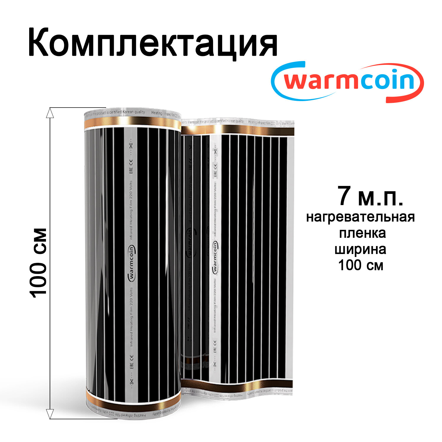Теплый пол Warmcoin инфракрасный 100см 180Вт/м. кв. под ламинат, 15 м. п