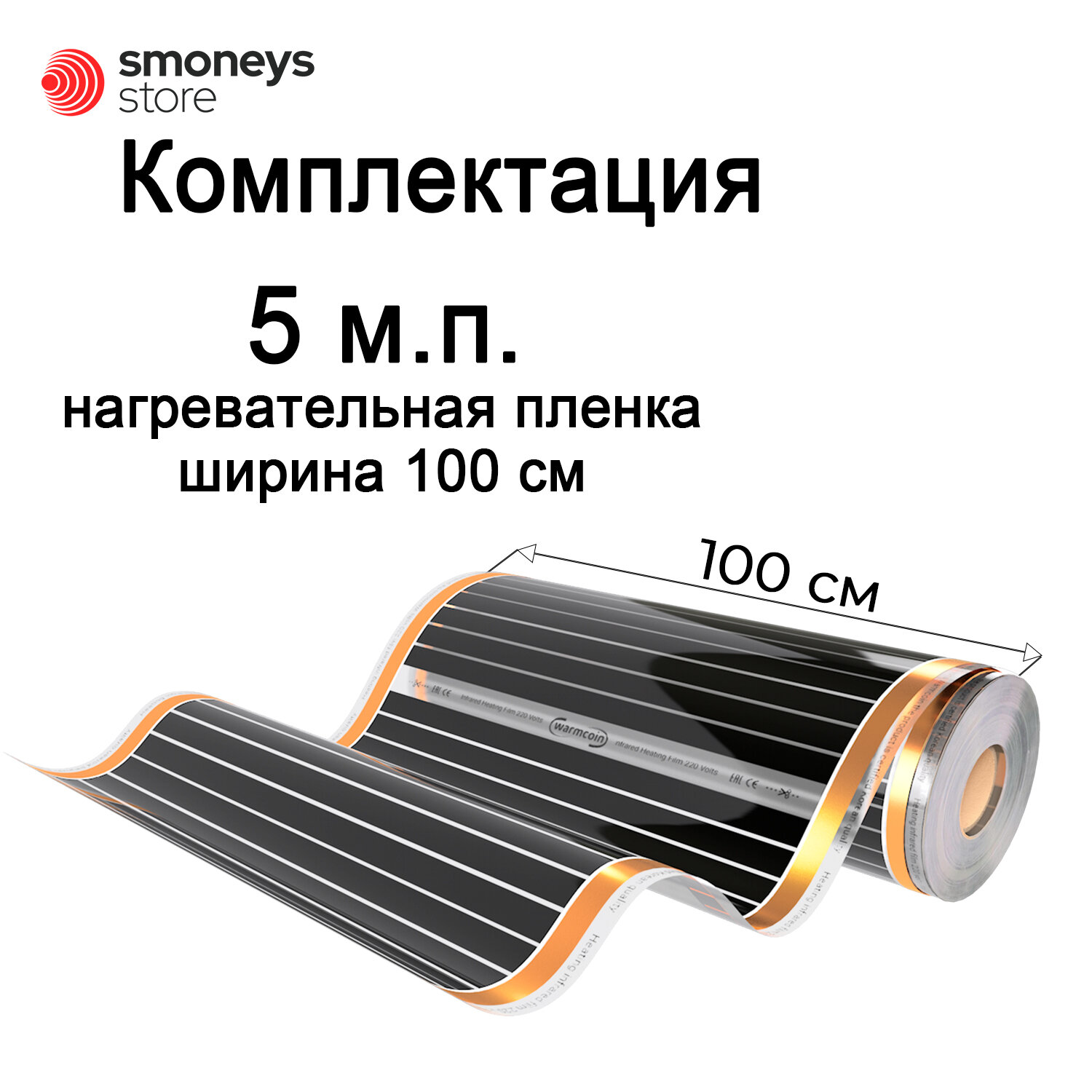 Теплый пол Warmcoin инфракрасный 100 см 220Вт/м. кв. под ламинат, 5 м. п