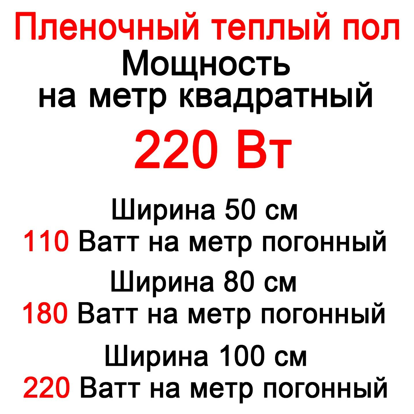 Пленочный теплый пол шириной 100 см 20 м.п. 220 ВТ на м.кв.