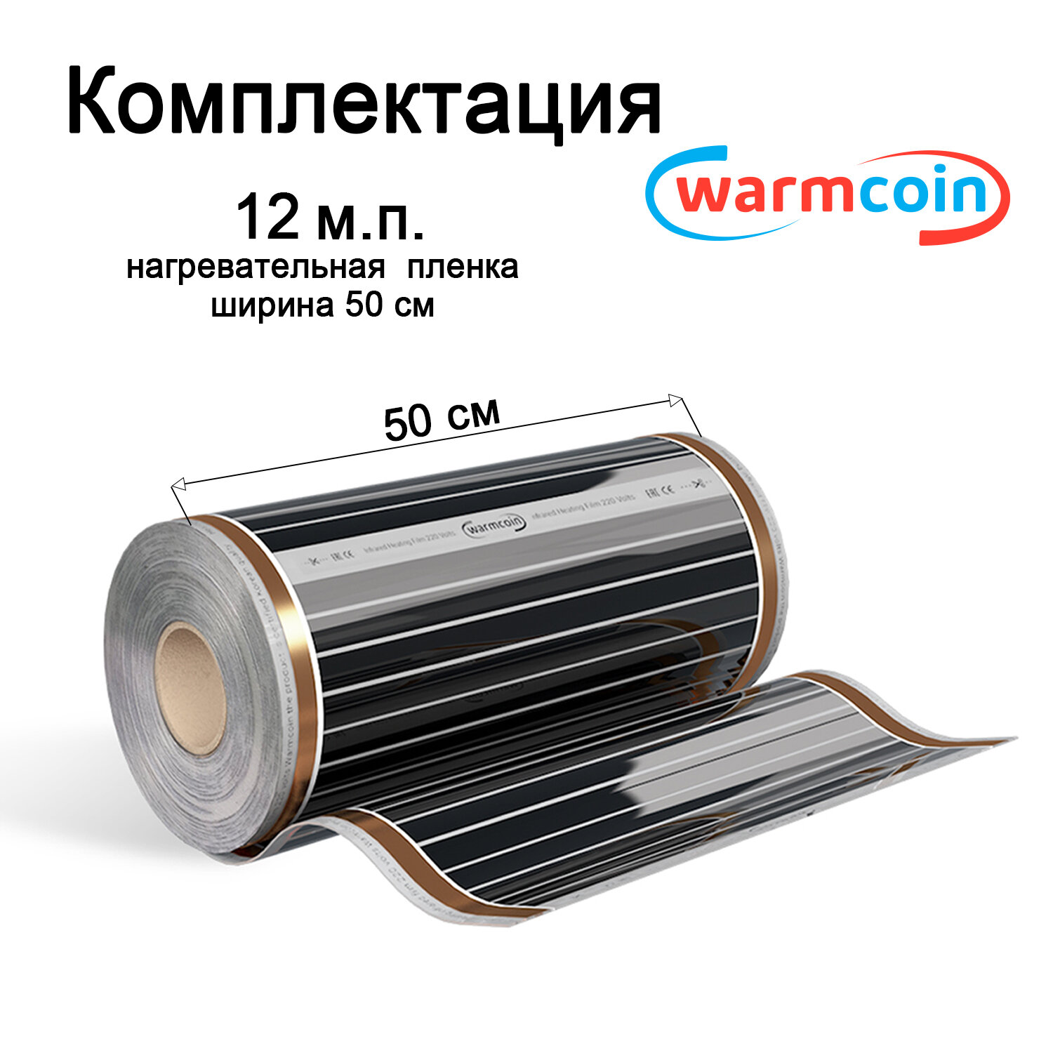 Теплый пол Warmcoin инфракрасный 50см 180Вт/м. кв. под ламинат, 6 м. п.