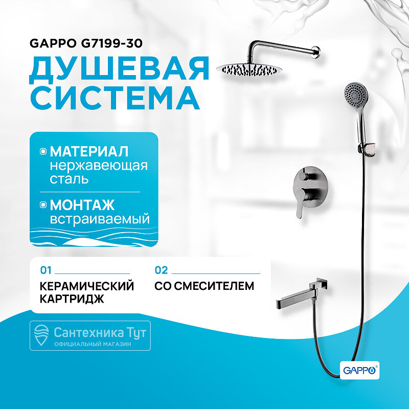 Ниже Вы можете прочитать отзывы на Душевая система скрытого монтажа Gappo G7199-30 сатин, ознакомится с подробными характеристиками, посмотреть интересные обзоры и фотографии на Душевая система скрытого монтажа Gappo G7199-30 сатин.