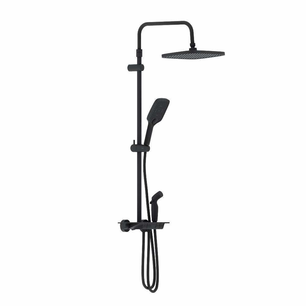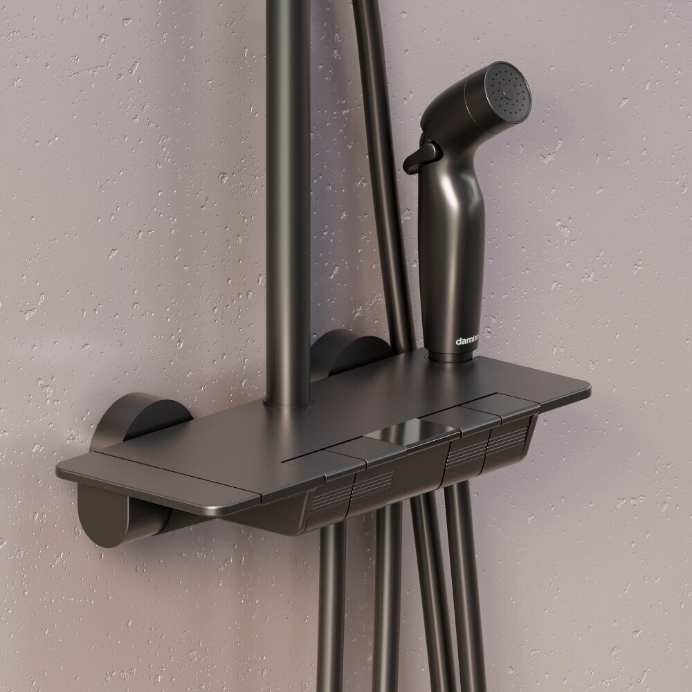 Купить Душевая система с термостатом DAMIXA Gala (953770300) с изливом, полкой и гигиеническим душем, черная