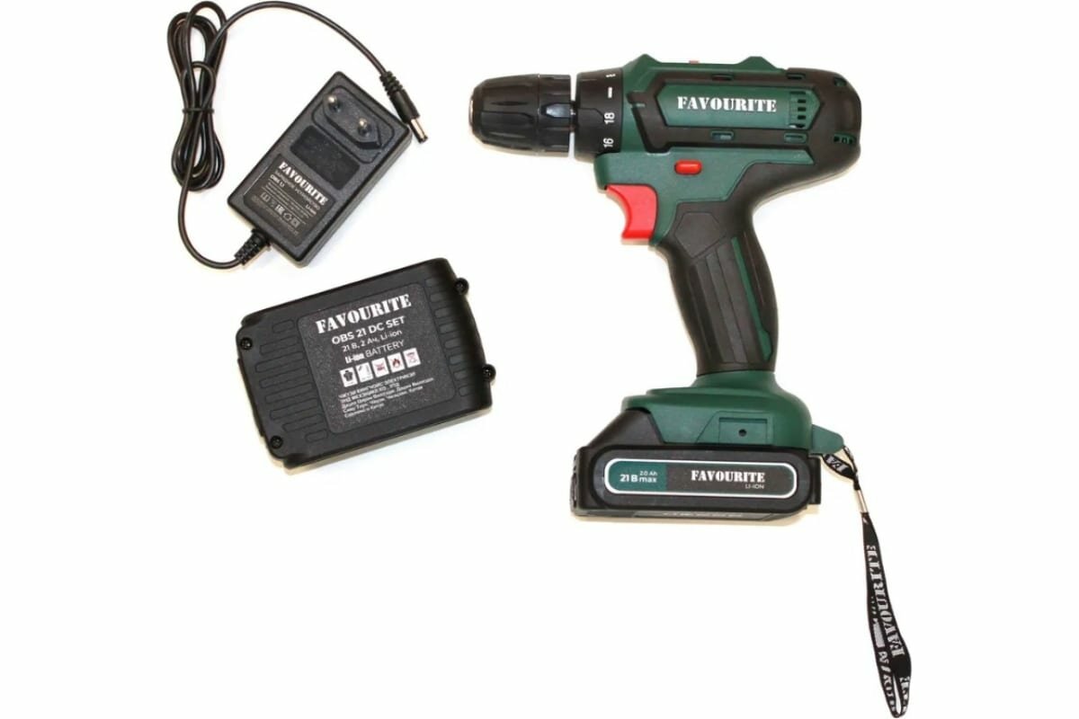 Дрель-шуруповерт аккумуляторная Li-ion, 21 В, 2 Ач, 30 Hm, 0-350/0-1350 об/мин, FAVOURITE OBS 21 DC SET интересное: