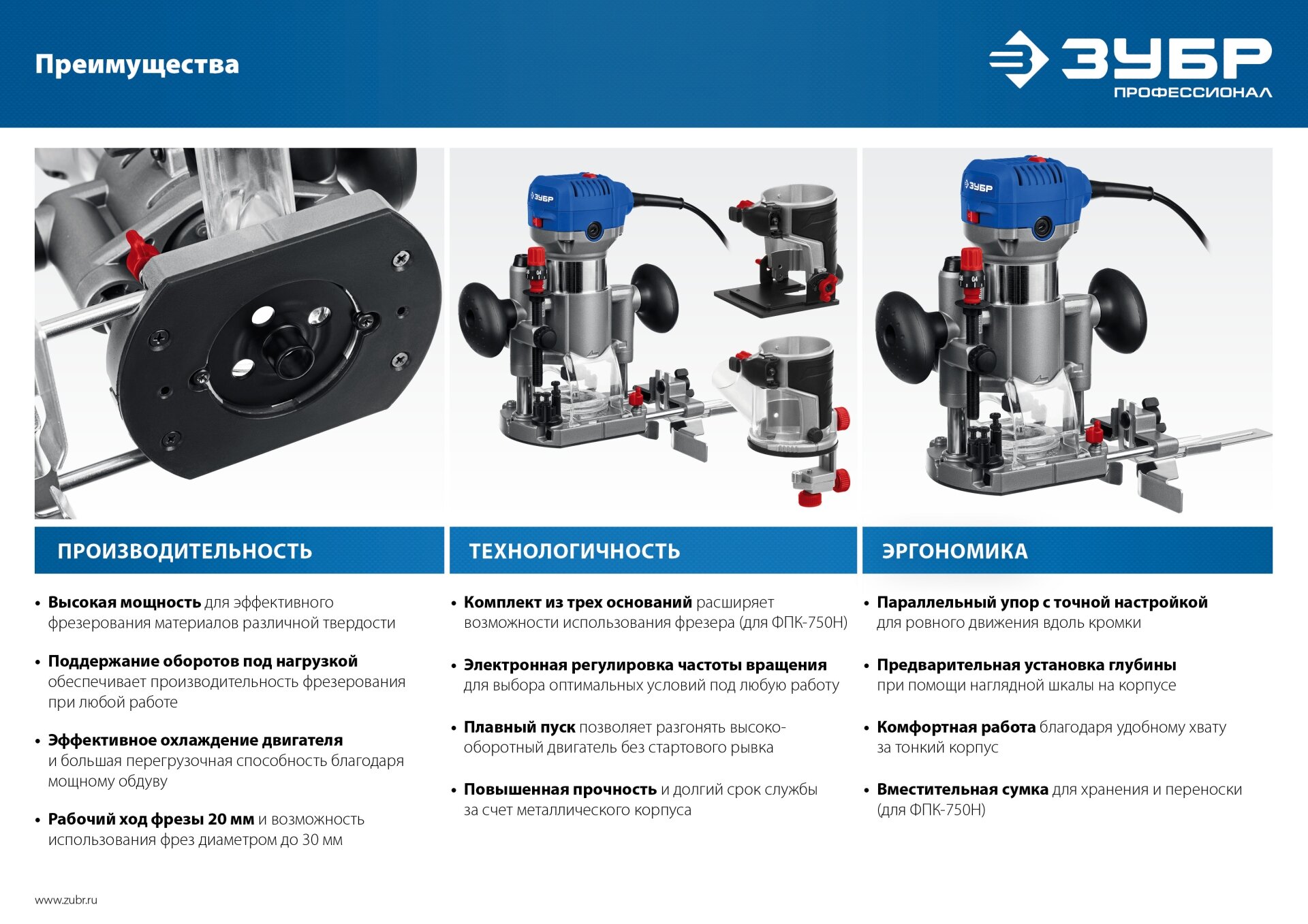 Фрезер Зубр Профессионал ФПК-750 интересное: