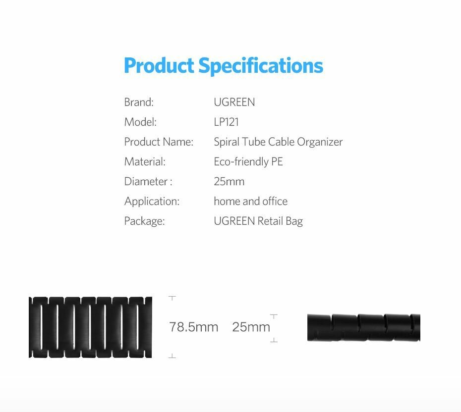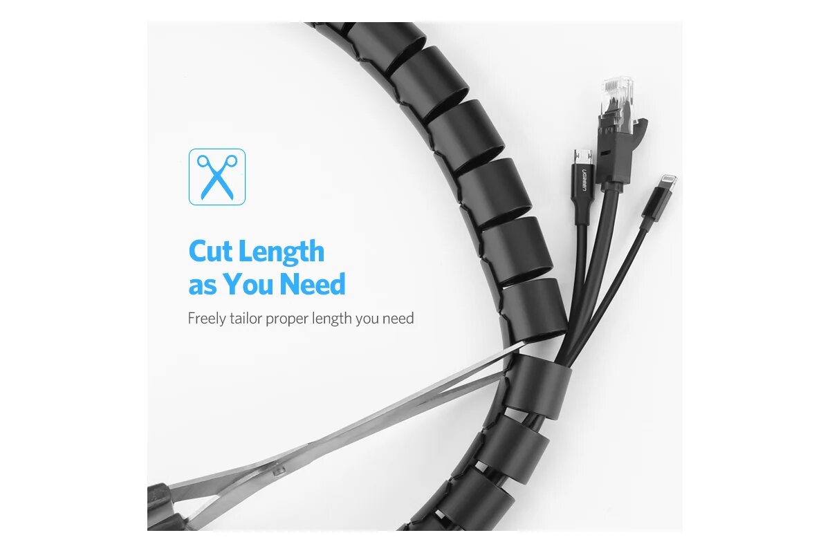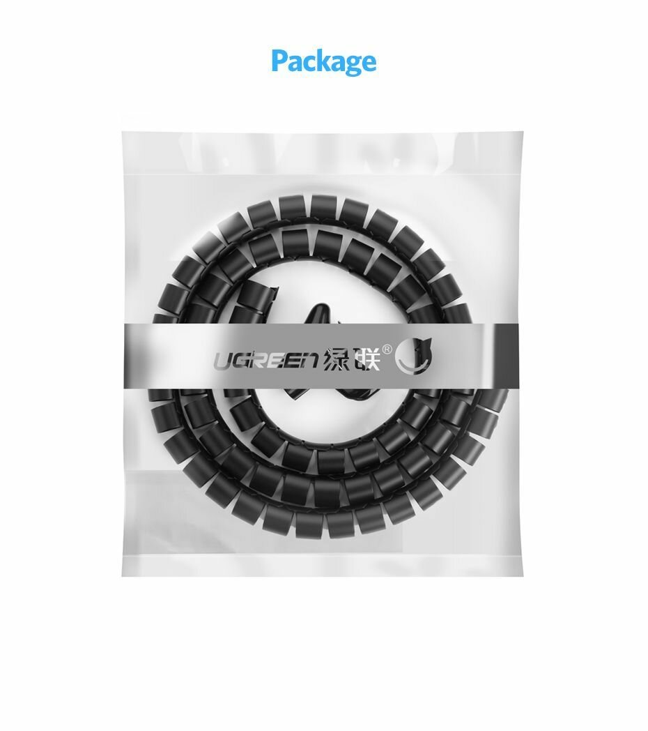 Кабельный организатор UGREEN LP121 30818_ для проводов, диаметр: 25 мм, 1,5м, черный