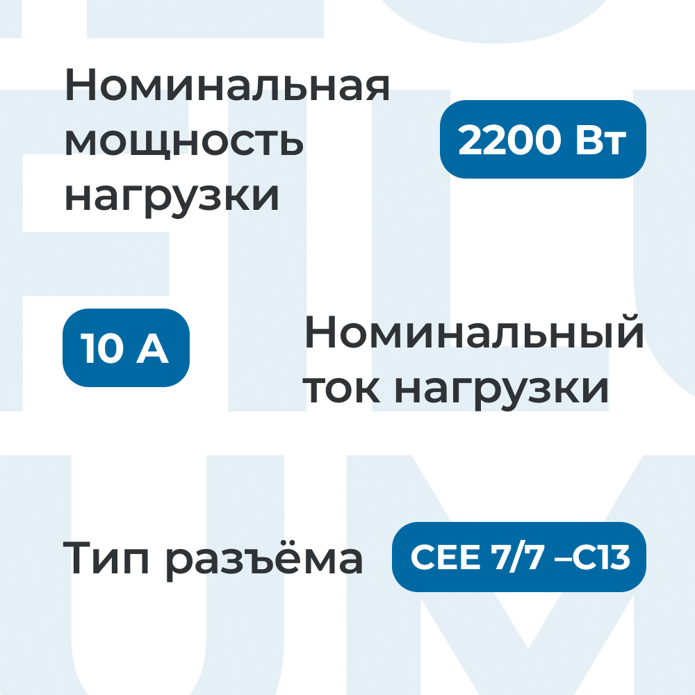 | Разъемы | CEE 7/7 (Schuko) - IEC C13 |