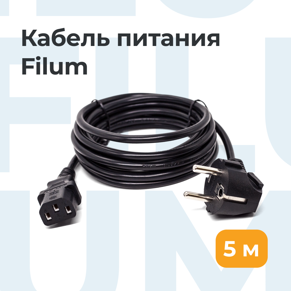 Купить Filum Кабель питания cee 7/7- с13, 3x0.75мм?, 220в, 10a, чёрный, 5м FL-PC10-EU-C13-5M