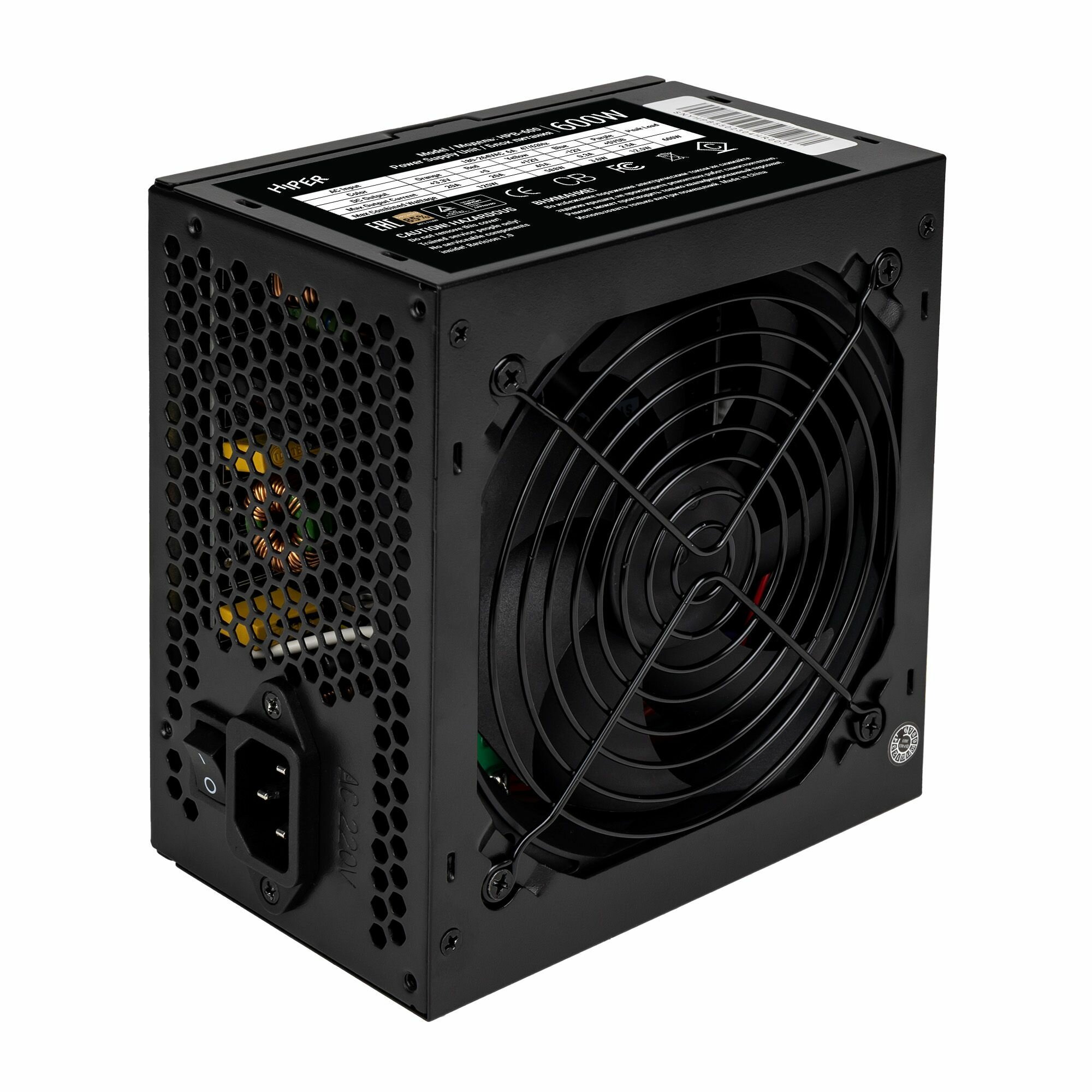 Блок питания HIPER для ПК 600 Ватт/ PSU (ATX 2.31, 600W, Active PFC, 80Plus BRONZE, 140mm fan, черный) BOX