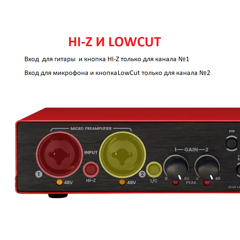 | Плюсы: | Легка в использовании, много нужных функций: Hi-Z, Low Cut, Direct monitoring, фантомное питание, регулировка громкости как входа, так и выхода |